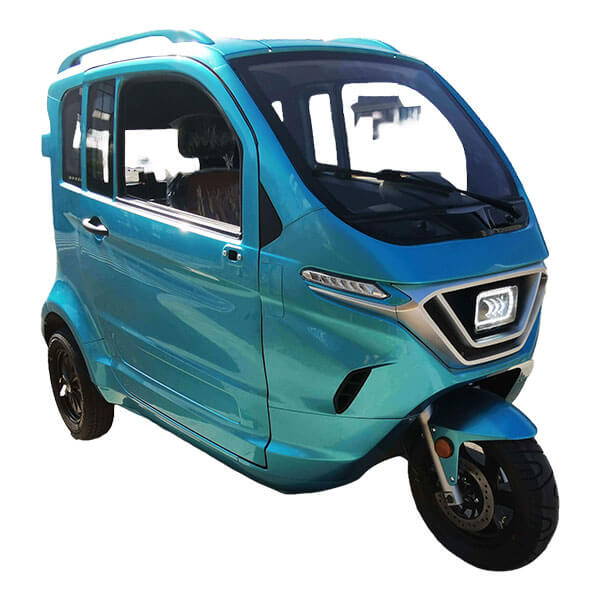 Fully enclosed 3-seat electric trike with 45 km/h top speed, low-noise hub motor, and upgraded comfort features.